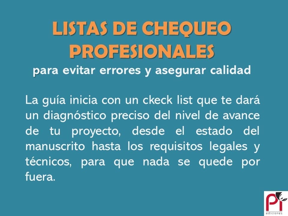 Listas de chequeo profesionales que te ayudarán a esquivar errores y asegurar calidad en cada fase de tu libro.